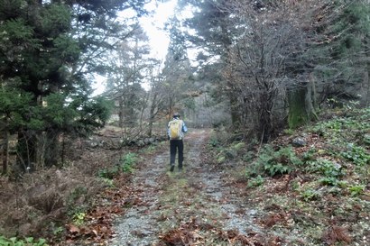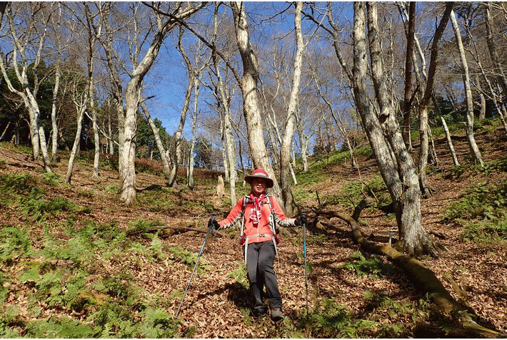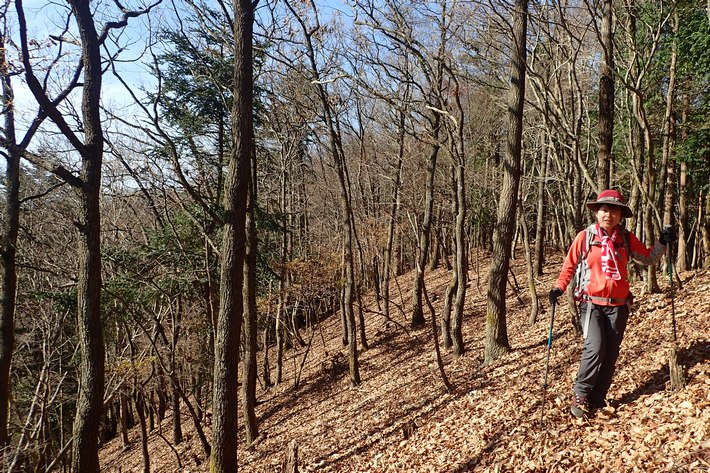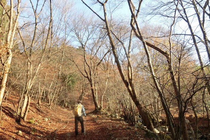 小野越周辺の自然林 ![]() 小野越周辺は平坦に自然林となっており、適当に黒尾山の小野登山口方面を目指して横切って行く。 |