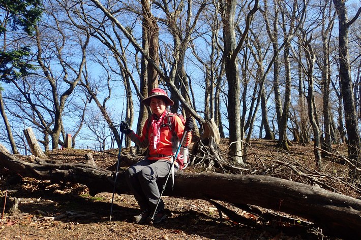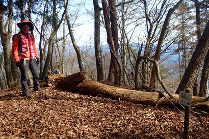 ネット沿いの急坂を過ぎると斜度が緩み、快適な尾根が三町境ピークまで続いています。 | 三町境ピーク 11:40−12:03(昼食) ![]() 駐車場所をスタートし、3時間以上ほとんど休憩なしで歩き通したので、ここで昼食にする。 展望もまずまずで、横たわっている倒木がベンチ代わりになる。 ![]() |