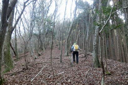 黒尾山への稜線歩き | 樹林帯を抜けると黒尾山頂上の裏側に飛び出す | |