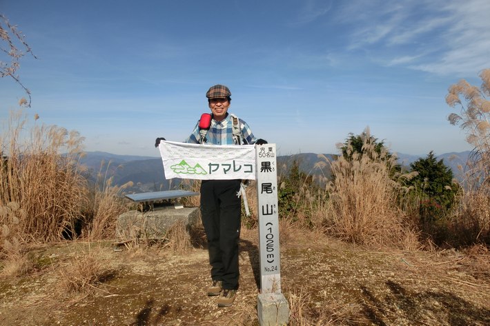 黒尾山記念撮影 同行者は宍粟50名山の2廻り目の黒尾山は既に済ませているそうですが、小野ルート→大国牧場コースは初めて歩いた様です。 |