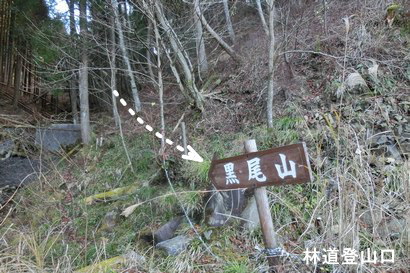 頂上から20分程で黒尾山林道登山口に到着 | |