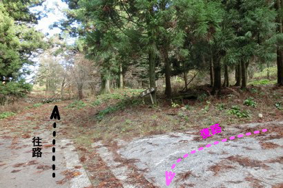 牧場内の道 | 牧場内の道から左折して岩上谷林道に入る | |