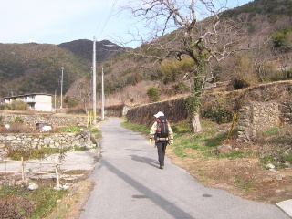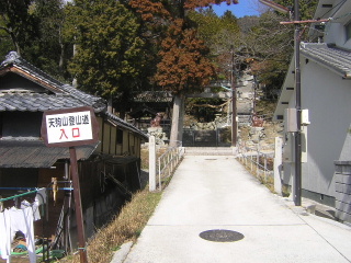 JR赤穂線の寒河(ソウゴ)駅の北側に赤穂方面からの国道が走っており、その道の50m程度北側に平行して旧道が古い町並みと共にある。この道沿いに、天狗山へ直接登る登山口の神社や、お寺、コミュニティP等が並んでいます。 今回は休日でもあるのでこのコミュニティPに車を止めさせてもらった。 ここから、時計回りに周遊するコースを歩くため、しばらくは右の写真の様なのどかな地道を登山口目指して歩いて行きます。 |