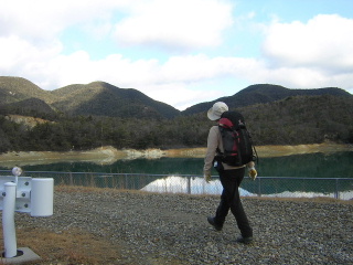 頂上には写真の様な露岩が東西にあり、その間にコースの案内板も掲げられています。 私たちはこの案内図のコースを時計回りに歩いてきました。頂上の四等三角点は、写真の大岩の真ん中に丸い金属標が埋め込まれています。三角点と言えば四角の石の柱が埋め込まれているものとばかり思っていましたが、このような金属標は始めてです。 頂上からの景色は360°見渡す事ができ、南東方向には赤穂の町並みの向こうに家島や小豆島、南西には日生諸島の瀬戸内海、遠くには四国の屋島まで遠望する事ができる。北方に展開する景色は遠くに雪を被った氷ノ山、後山、那岐山を見ることができました。 ここでは、岡山から来られた方と会いいろいろこの辺りの景色について教えてもらいました。 |