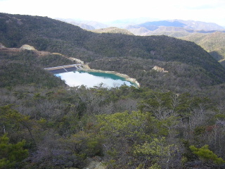 渓谷を上り詰めると、ぱっと目の前が広がり、高原状の場所に三ツ池と総称される下池、中池、奧池が順次現れてくる。 左の写真は一番上にある奥池です。 この対岸が分岐となっており、対岸沿いに天狗山への稜線へ登って行くことになります。 右の写真は稜線へ最初のピークを目指して登って行く途中から奥池方面を振り返った写真です。この辺りから展望も開けてきます。 |