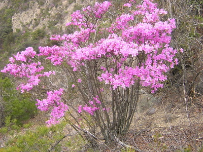 4月初旬には登山道周辺はつつじが満開となりピンクに染まります。 | |