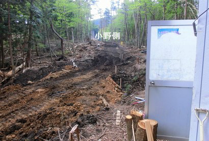 「小野越」の直ぐ横にまで小野側からの林道延伸工事がされていた。 何で次から次に林道工事が必要なのでしょうか??![]() |
