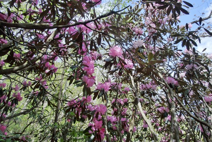 新緑もさることながら、吊り尾根の北側斜面には数十本の石楠花が群生しており、花いっぱいで丁度満開でした。