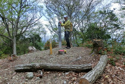 「深山」頂上で自分撮り記念撮影 今日は晴れているのに風が強く ![]() |