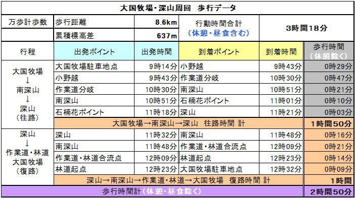 このU字谷から作業道に降り立ち、そのまま作業道→岩上谷林道を下って大国牧場の駐車場所に戻るコースをチョイスする。深山→大国牧場の駐車場所までちょうど1時間で帰って来ることが出来た。 | ||