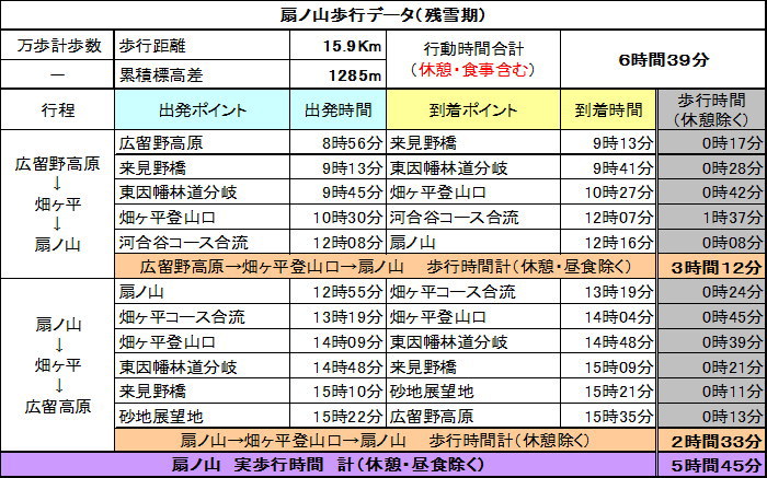 広留野高原登山口・・来見野橋・・中国自然歩道・・東因幡林道・・扇ノ山林道・・畑ヶ平登山口・・河合谷コース合流・・扇ノ山・・扇ノ山北斜面(積雪期限定)・・畑ヶ平コース合流・・畑ヶ平登山口・・東因幡林道・・来見野橋・・砂地展望地・・広留野高原登山口